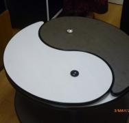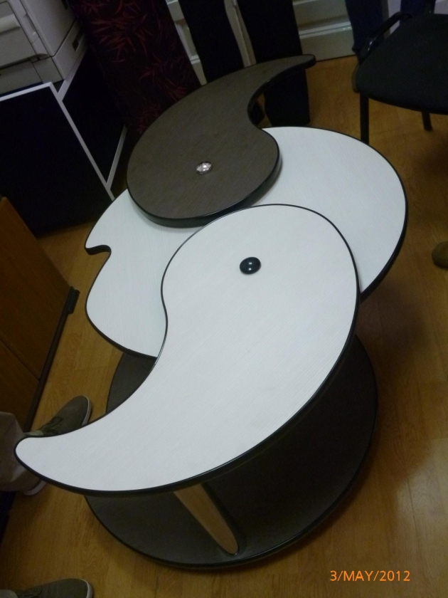 masuta extensibila pe rotile,cu diametrul de 80 cm care,printr-un ingenios mecanism se extinde pana la 1,6 m;inaltimea de 50 cm este confortabila pentru a servi musafirii cu o cafea,ceai sau tarie…
